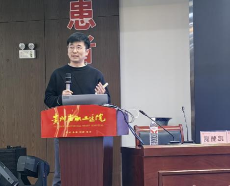 胡馗院长做开幕致辞。他表示,贵州省职工医院作为贵州省总工会下属的三级综合医院,同时是贵州大学附属第二医院、贵州省人民医院花溪分院。医院目前的主线任务仍是临床治疗和教学,科研基础仍待提高,基金项目申报是医院下一步的突破方向。胡馗院长指出“感谢贵州大学医学院及杨巍教授搭建高水平交流平台,让临床一线人员有机会接受科研启蒙和思维训练,本次活动的开展将标志着医院与学校深度融合迈出实质性步伐”。